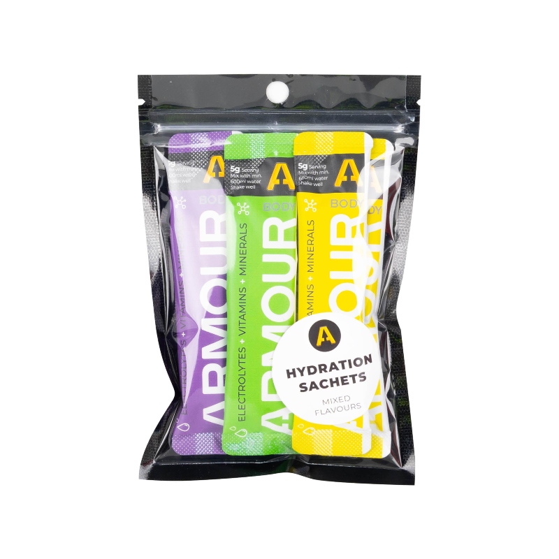 Body Armour Hydrate+ is a scientifically formulated hypotonic hydration solution that goes beyond standard electrolyte drinks - Australian-made and formulated to support optimal hydration, performance, and recovery. Enriched with essential vitamins and nootropics, each 5g sachet delivers a full spectrum of key electrolytes—sodium, potassium, magnesium, calcium, and chloride—ensuring precise fluid balance and electrolyte replenishment with no artificial colours, flavours or sweeteners.
