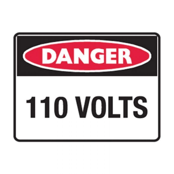 DANGER 110 VOLTS SIGN 300MM (W) X 225MM (H) POLYPROPYLENE