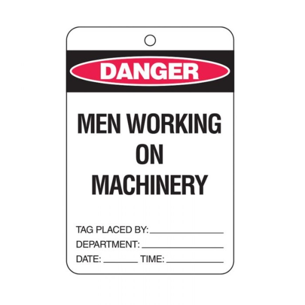 DANGER MEN WORKING ON MACHINERY LOCKOUT TAGS - REVERSE SIDE DO NOT REMOVE THIS TAG, CARDSTOCK