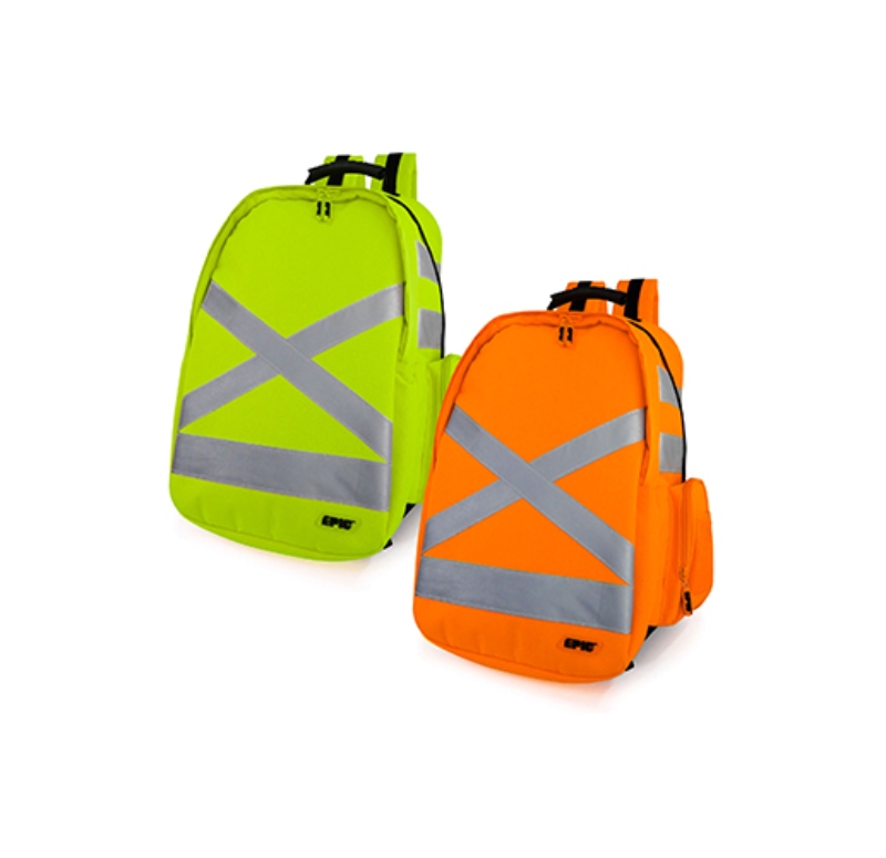 HEAVY DUTY HI VIS BACKPACK + REFLECTIVE TAPE. AVAILABLE IN ORANGE OR YELLOW