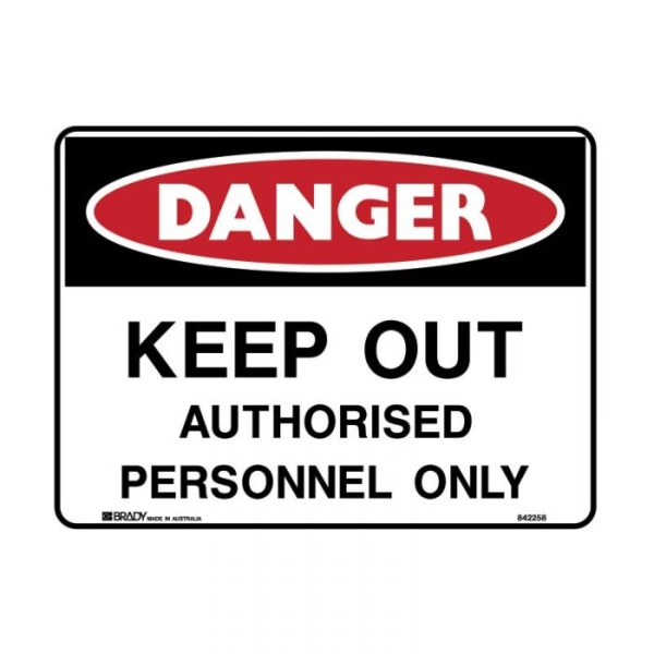 KEEP OUT AUTHORISED PERSONNEL ONLY SIGN 450MM(W) X 300MM(H) POLYPROPYLENE