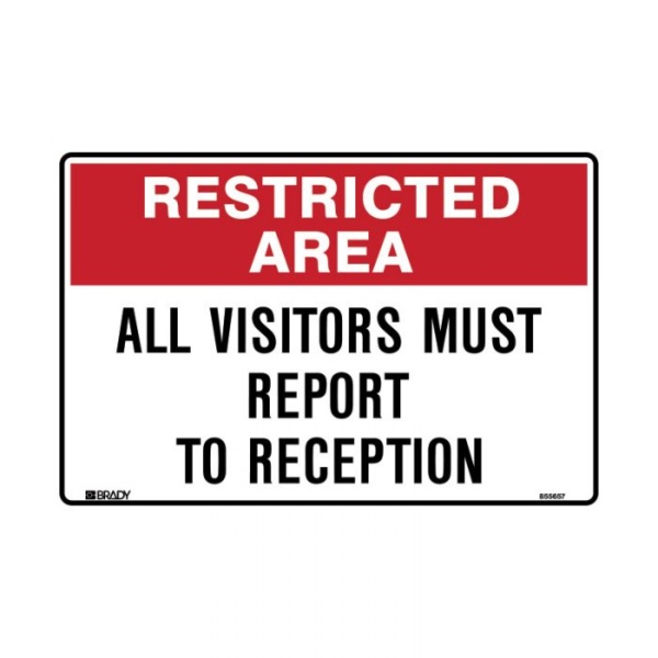 Restricted Area All Visitors Must Report To Reception Sign