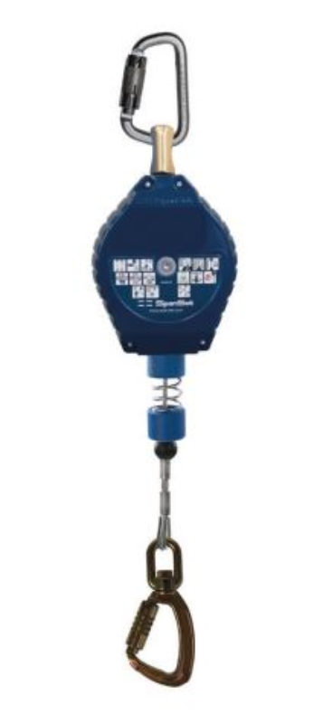 The Saverline - SRL STU P S 6 STA, plastic housed fall arrest block is a sturdy, low maintenance device fitted with a steel rope. The attachment anchorage point on the fall arrest block is a cast aluminium swivel eye ø16mm, suitable for connection via a standard karabiner type connector, or a standard karabiner type connector with an anchorage sling. The lifeline in this fall arrest block has been tested in a simulated fall over an edge as described in CNB/P/11.060. However, not all edges will react in the same way as the tested steel edge, so when using this fall arrest block, every effort must be made to ensure that in the event of an arrested fall, the lifeline does not pass over an edge.