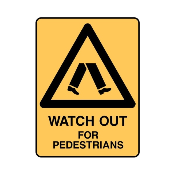 WATCH OUT FOR PEDESTRIANS SIGN 300MM (H) X 225MM (W) POLYPROPYLENE
